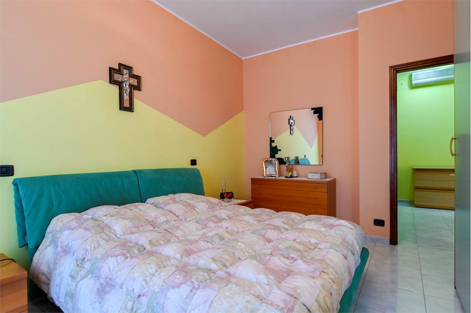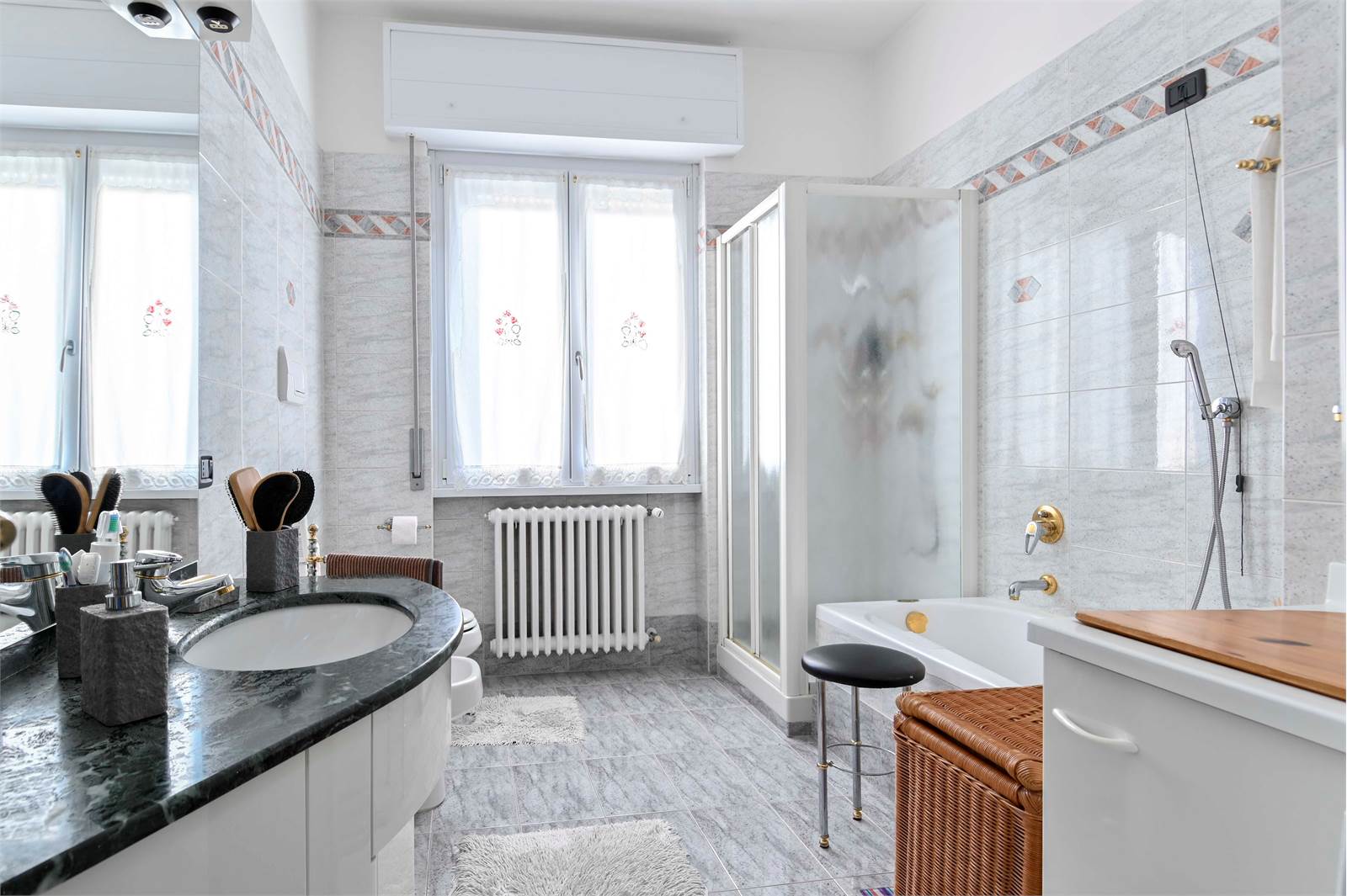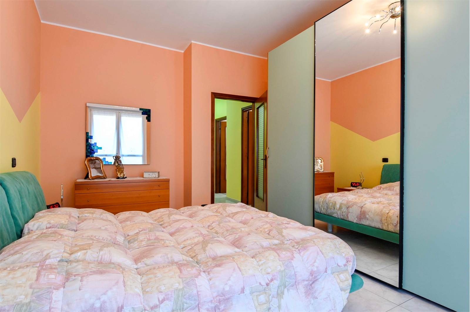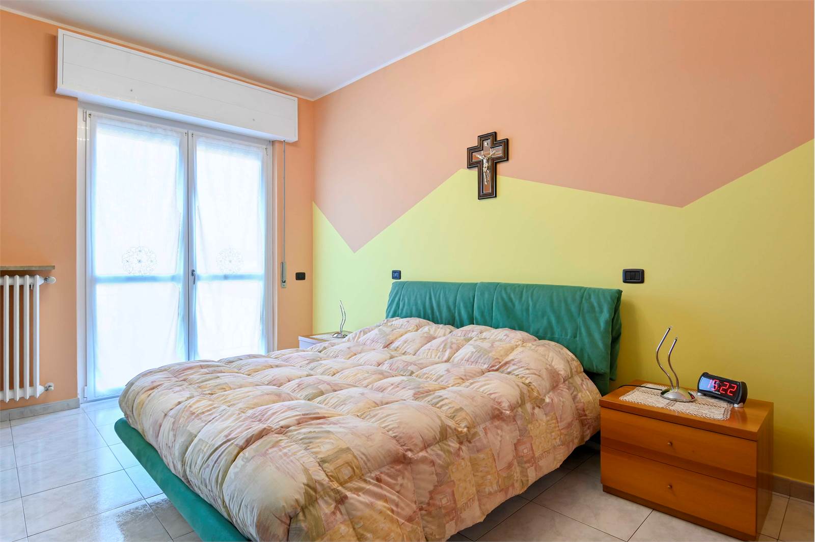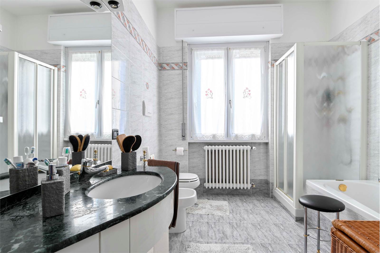 La zona notte, separata da un pratico secondo disimpegno, comprende una camera matrimoniale, una seconda camera da letto anch'essa matrimoniale, un bagno finestrato con doccia e vasca e un utile ripostiglio.