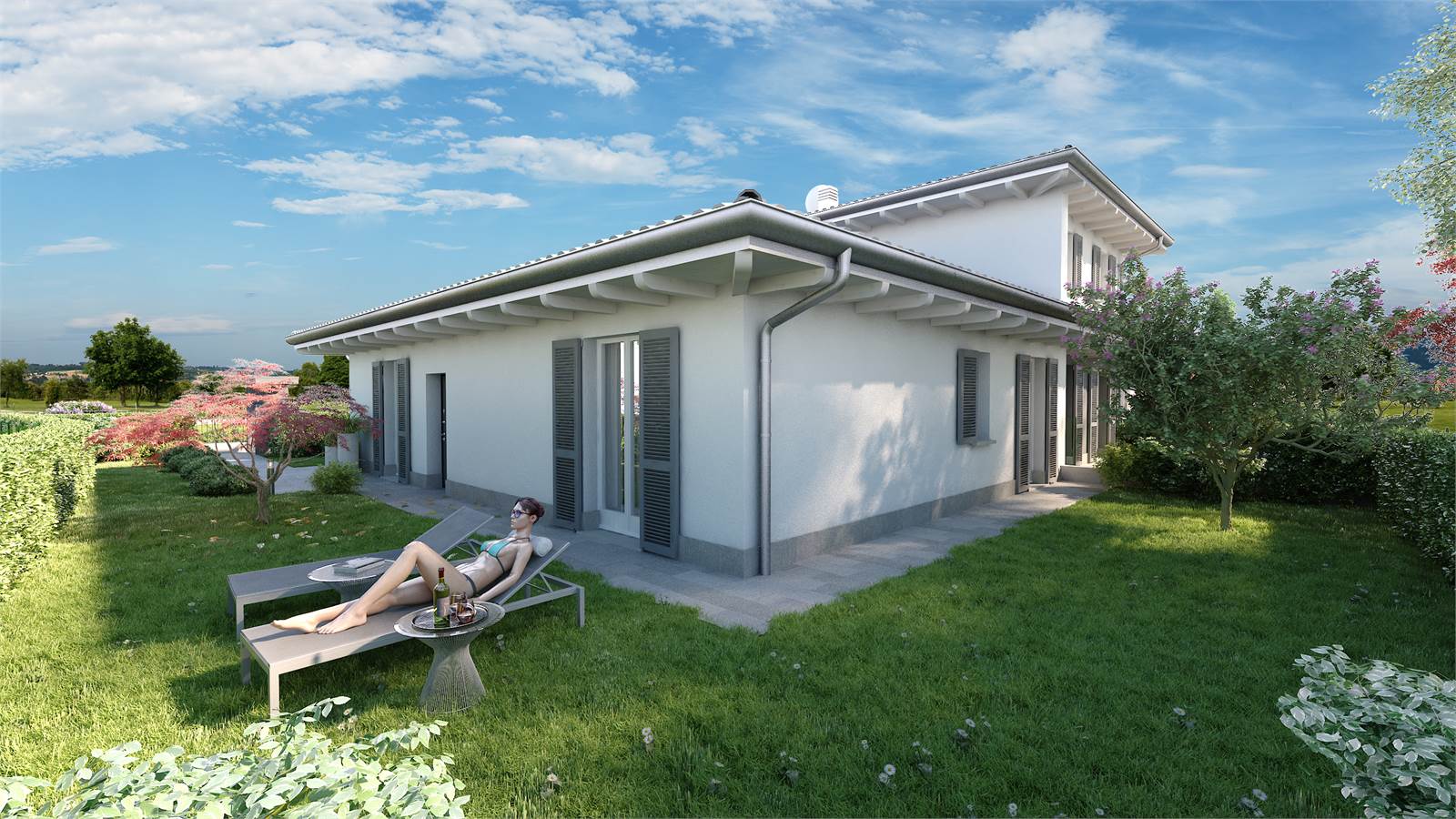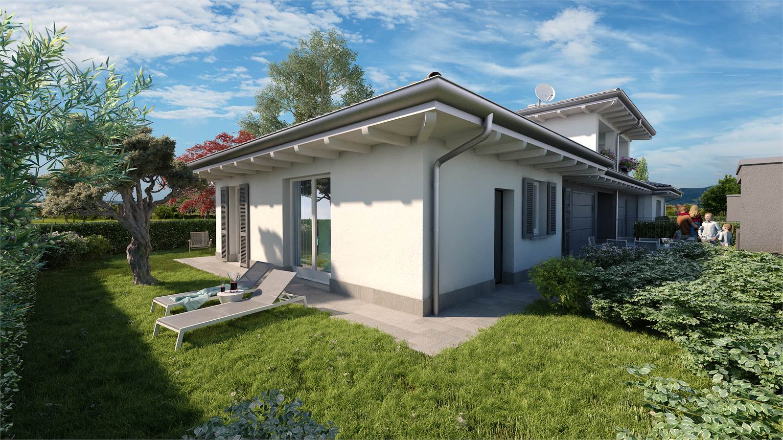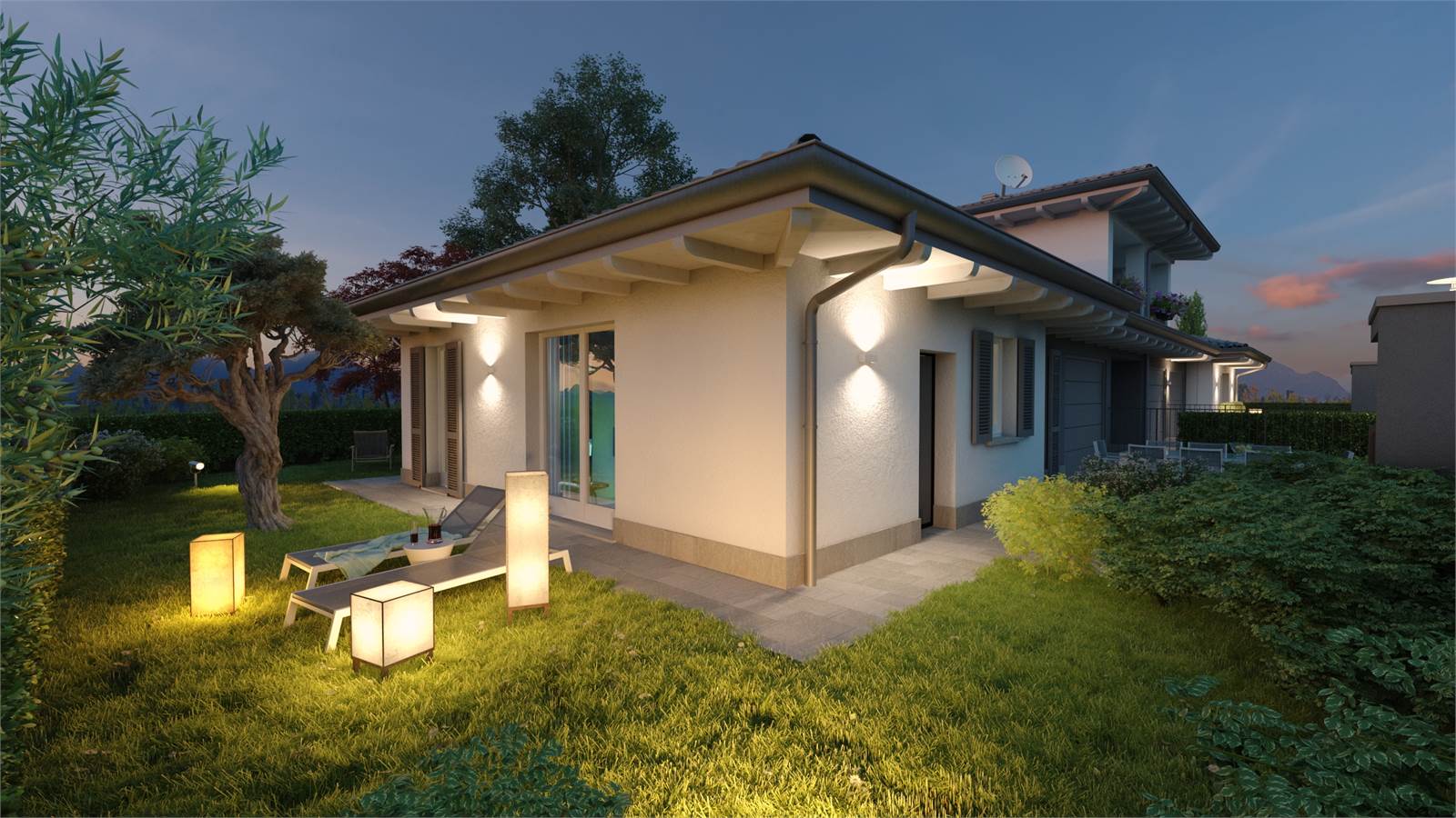 Da progetto, gli spazi saranno così organizzati: ampio e luminoso soggiorno con cucina a vista, disimpegno, bagno/lavanderia, zona notte composta da una spaziosa camera matrimoniale, due generose camere singole e un secondo bagno. Il tutto completato da un box e da un giardino privato.