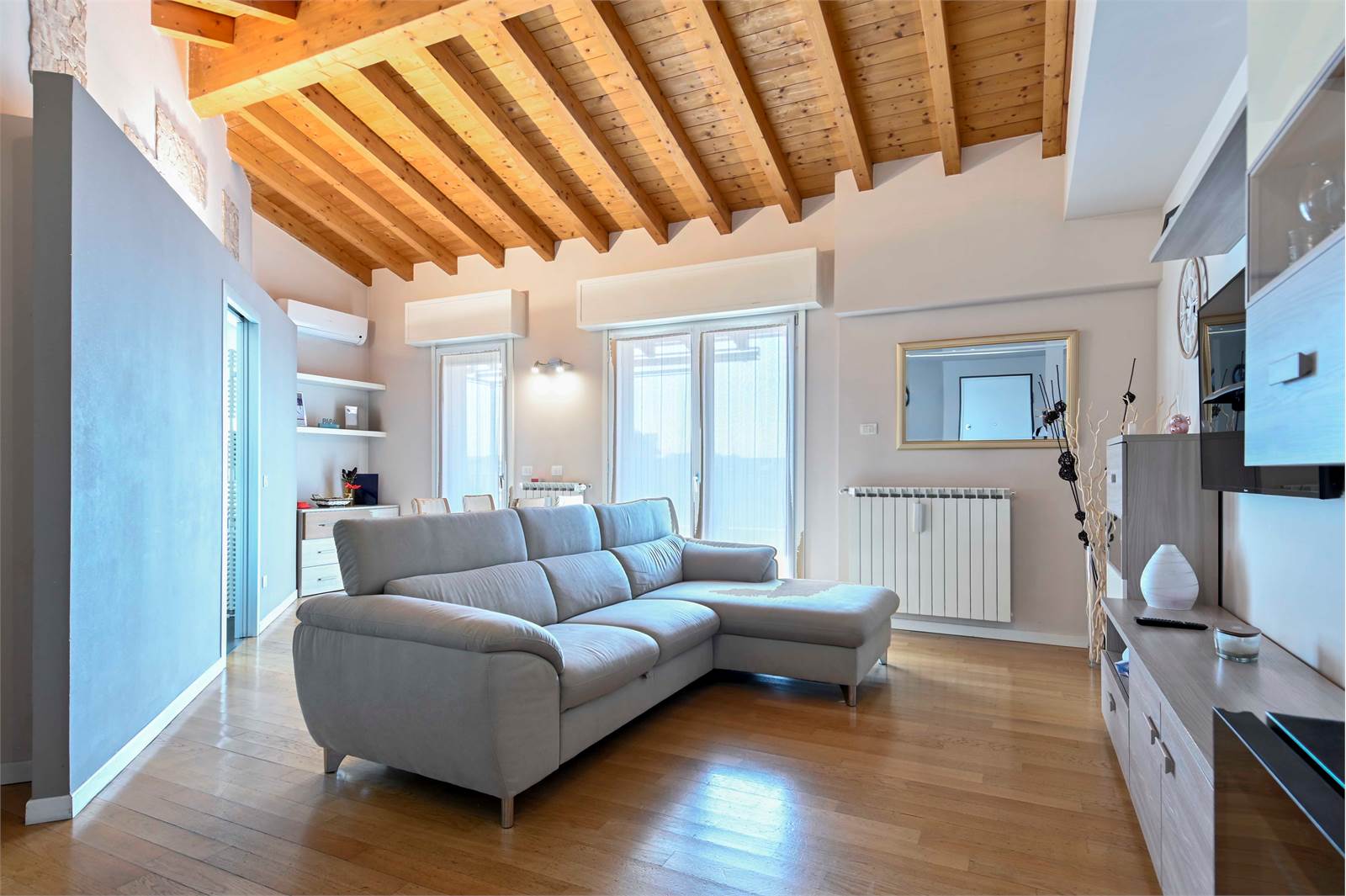 L’attico è quella soluzione ideale quando cerchi indipendenza, piano unico e dimensioni generose. E con un attico del genere, anche chi cerca una casa estetica, che fa scena, sarà soddisfatto.