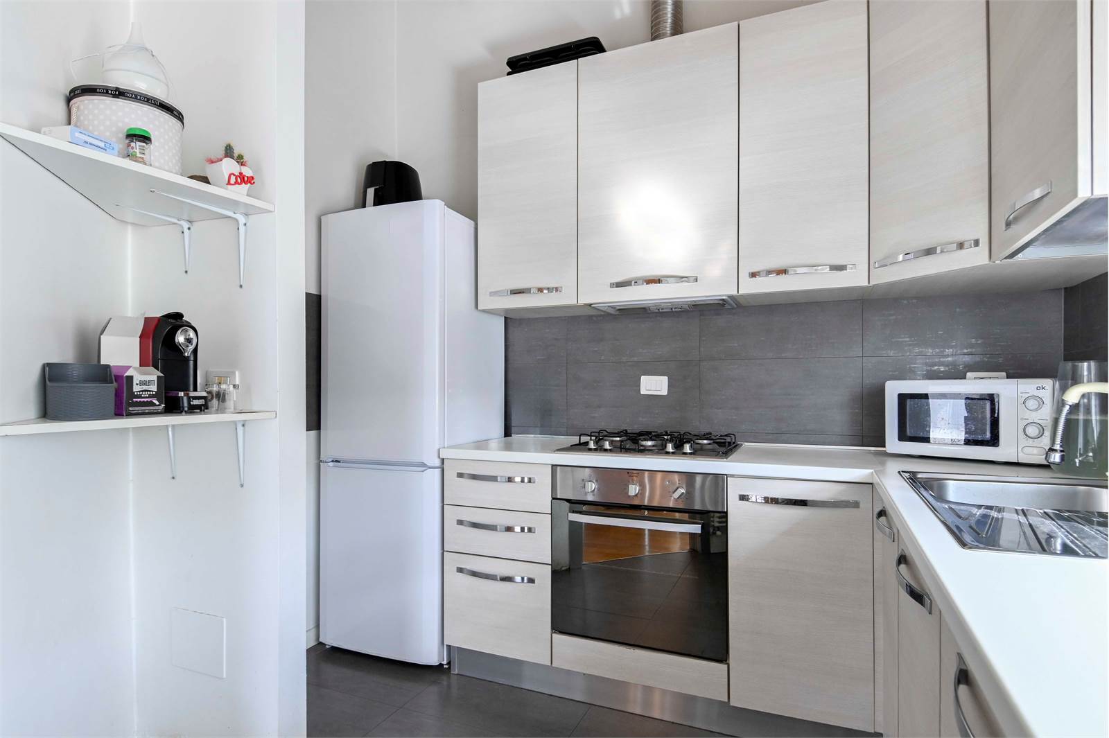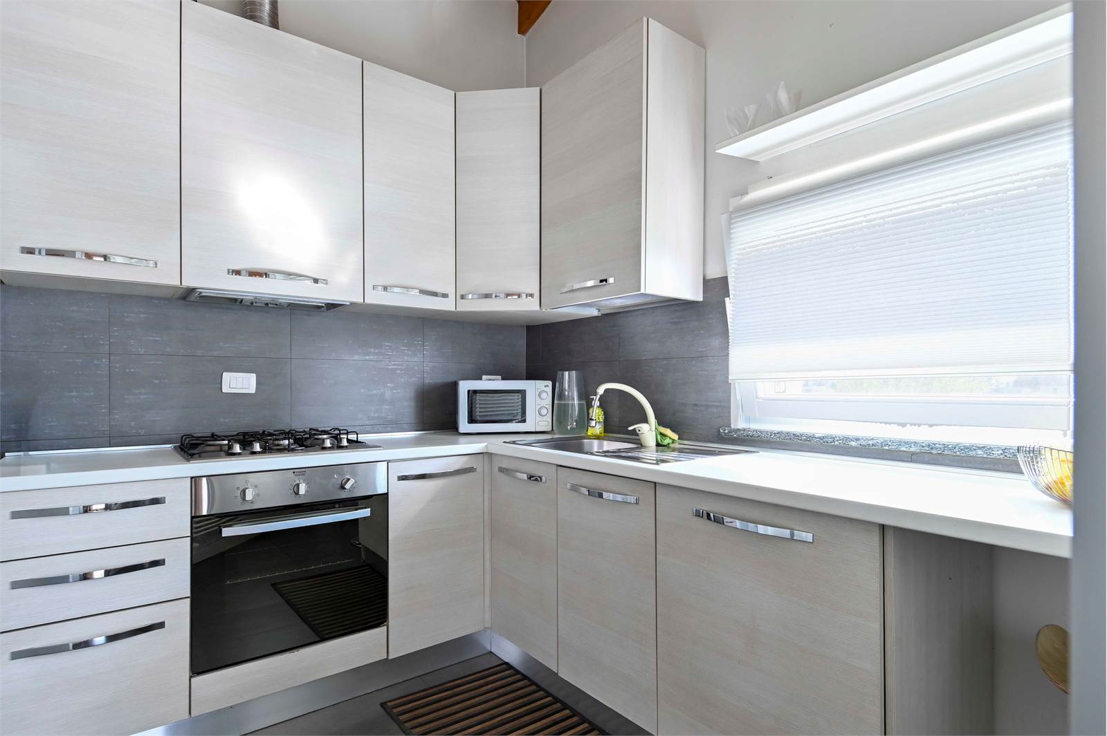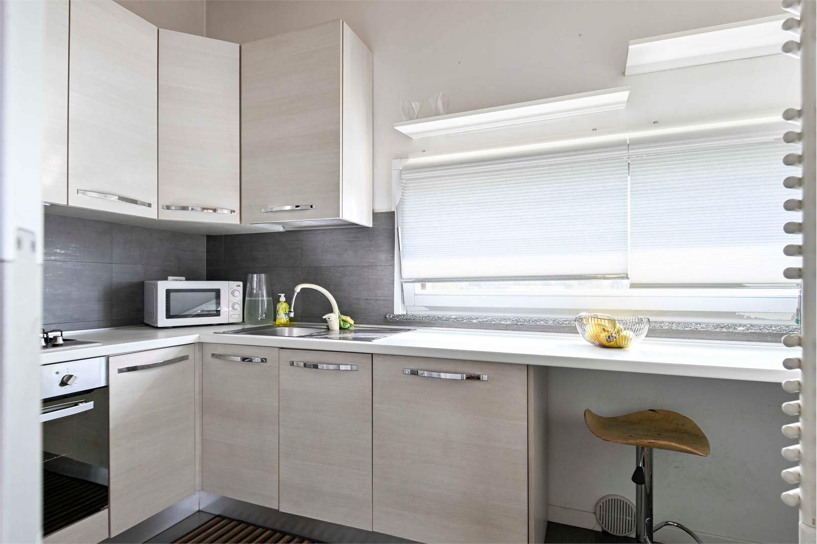 Il regno degli appassionati dell’arte della cucina: qui ne rimarranno soddisfatti! Piani di lavoro ampi e la separazione dal soggiorno ti farà sentire in un angolo di pace.